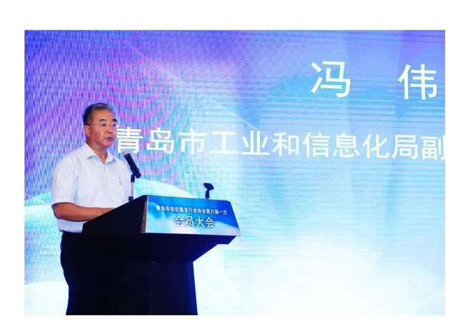冯伟先生首先致辞,他对青岛纺织服装行业协会召开换届大会表示祝贺,同时在致辞中也梳理了青岛地区纺织服装产业发展的优势和短板,希望纺织服装协会新一届理事会能抢抓发展机遇,引导会员企业深入研究材料、品牌、文化附加值,助力青岛纺织服装产业再创新的辉煌。